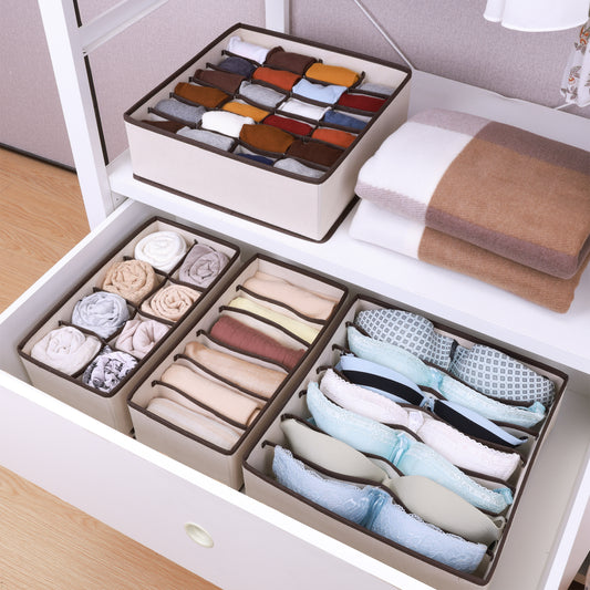 Set X4 Organizador Ropa Interior Separador Cajon Tela Beige