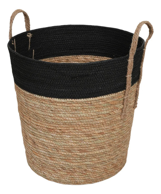 Canasto Organizador de Fibra Natural Con Manijas Bicolor