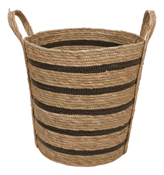 Canasto Organizador de Fibra Natural Con Manijas con Rayas
