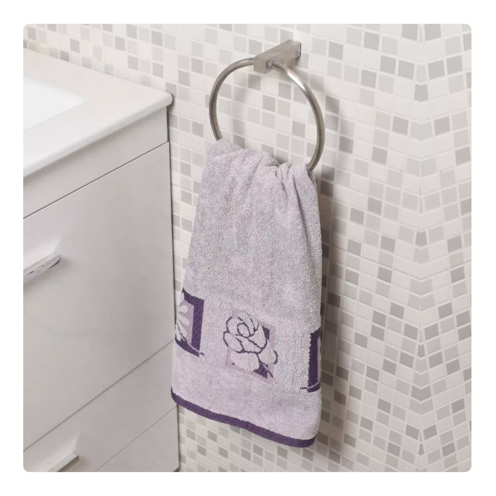 - Diseño: Forma de aro, ideal para colgar toallas de baño o manos.