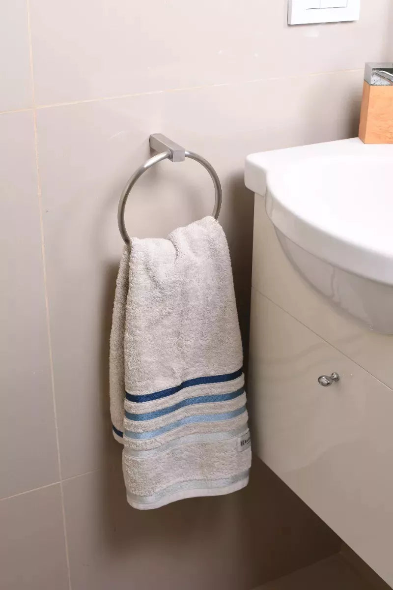 Mantén tu baño ordenado y elegante con este toallero en aro de acero inoxidable, una opción funcional y decorativa para tu hogar.