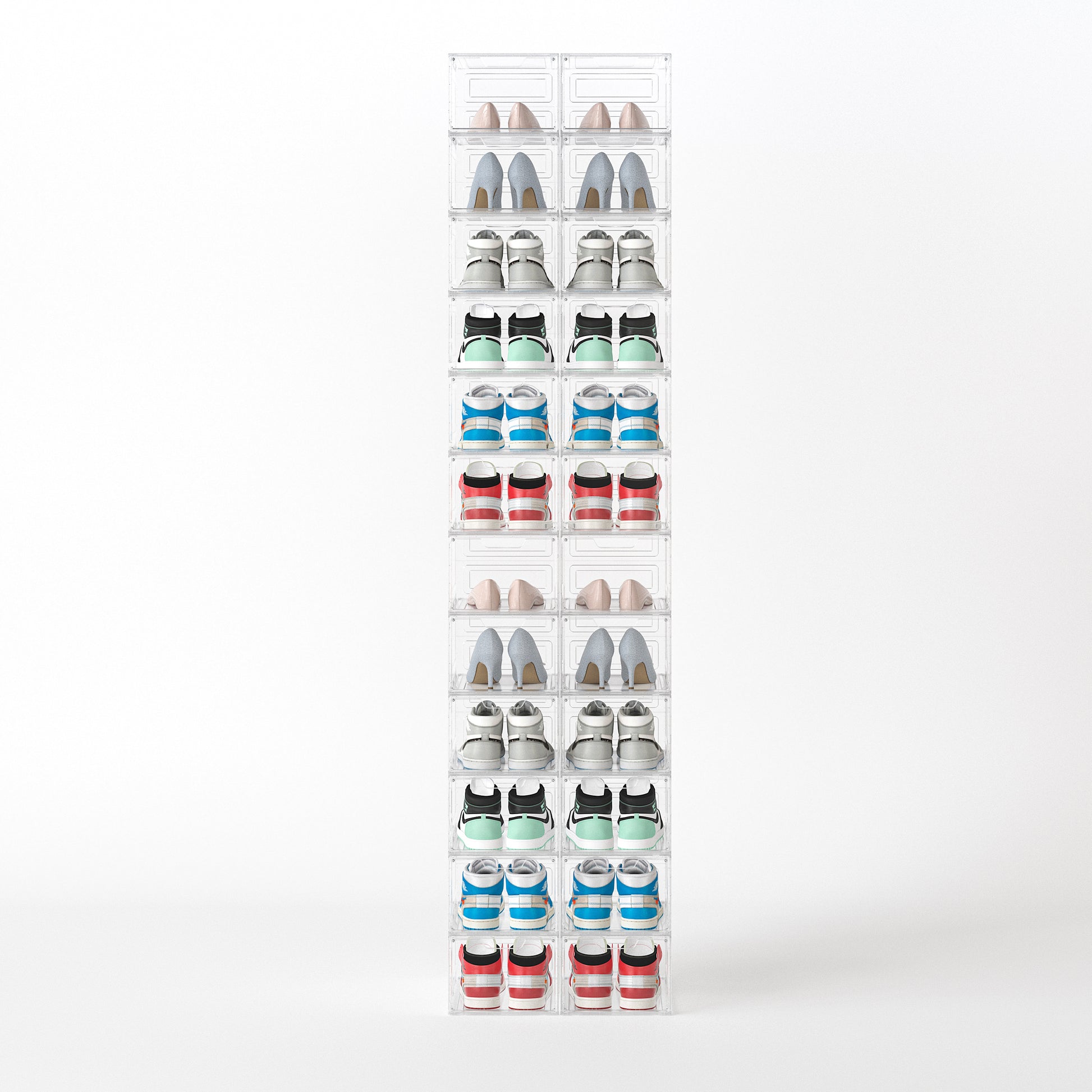 Mantené tu calzado protegido y bien organizado con esta caja para zapatos fabricada en ABS resistente. Su diseño moderno y apilable permite ahorrar espacio y mantener el orden en tu placard, vestidor u oficina.