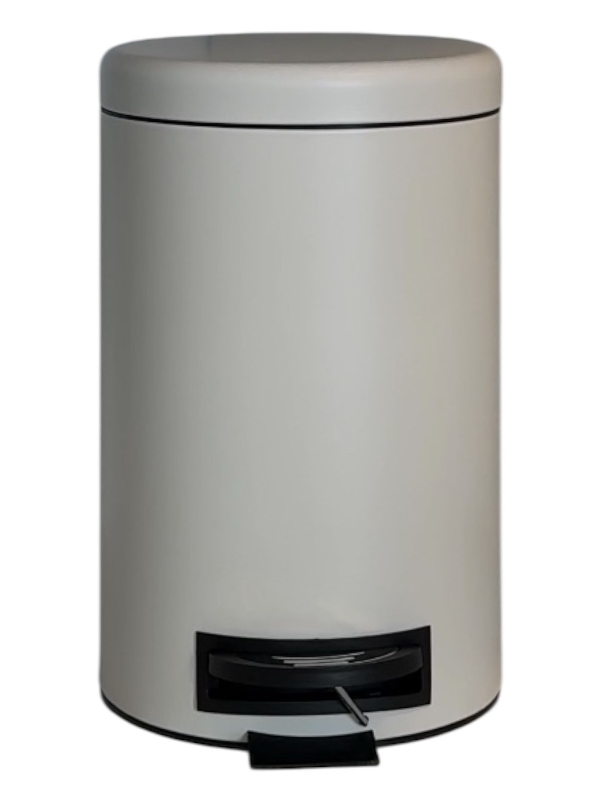 TACHO DE BASURA DE ACERO INOXIDABLE BLANCO MATE DE 12 LITROS CON APERTURA PEDAL Y CESTO INTERNO DESMONTABLE.