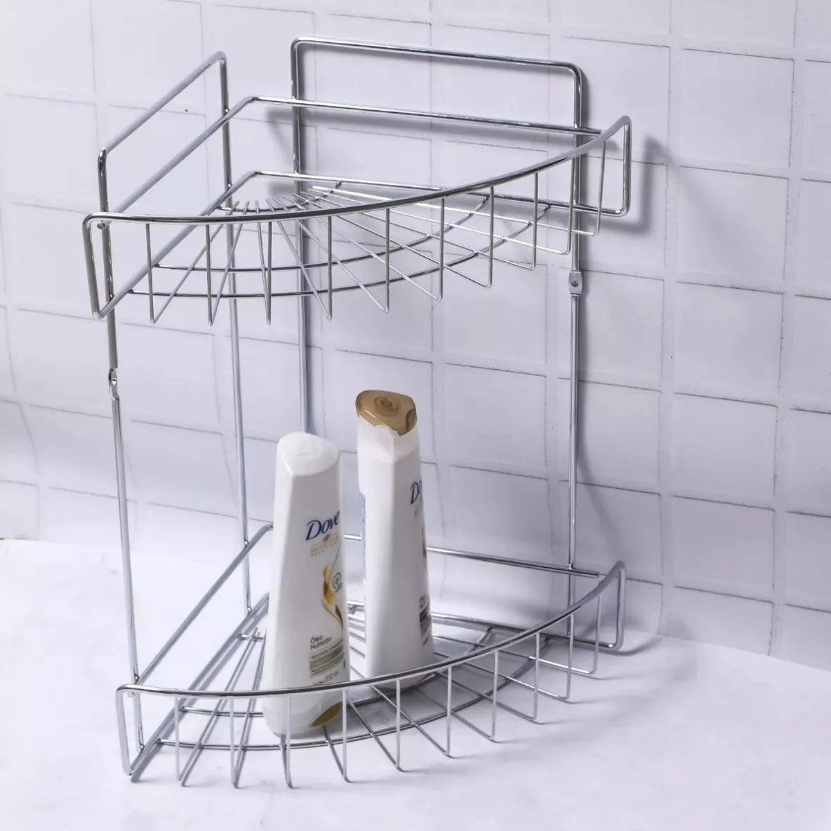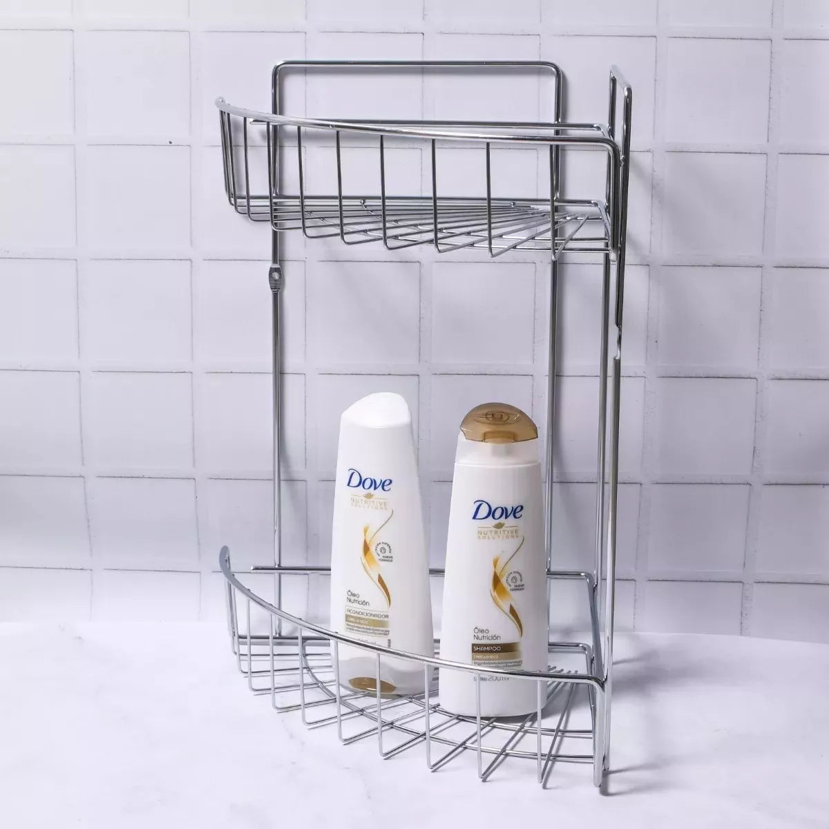 Agrega estilo y funcionalidad a tu ducha con esta repisa doble de acero cromado, una solución práctica para organizar tus productos de baño con elegancia.