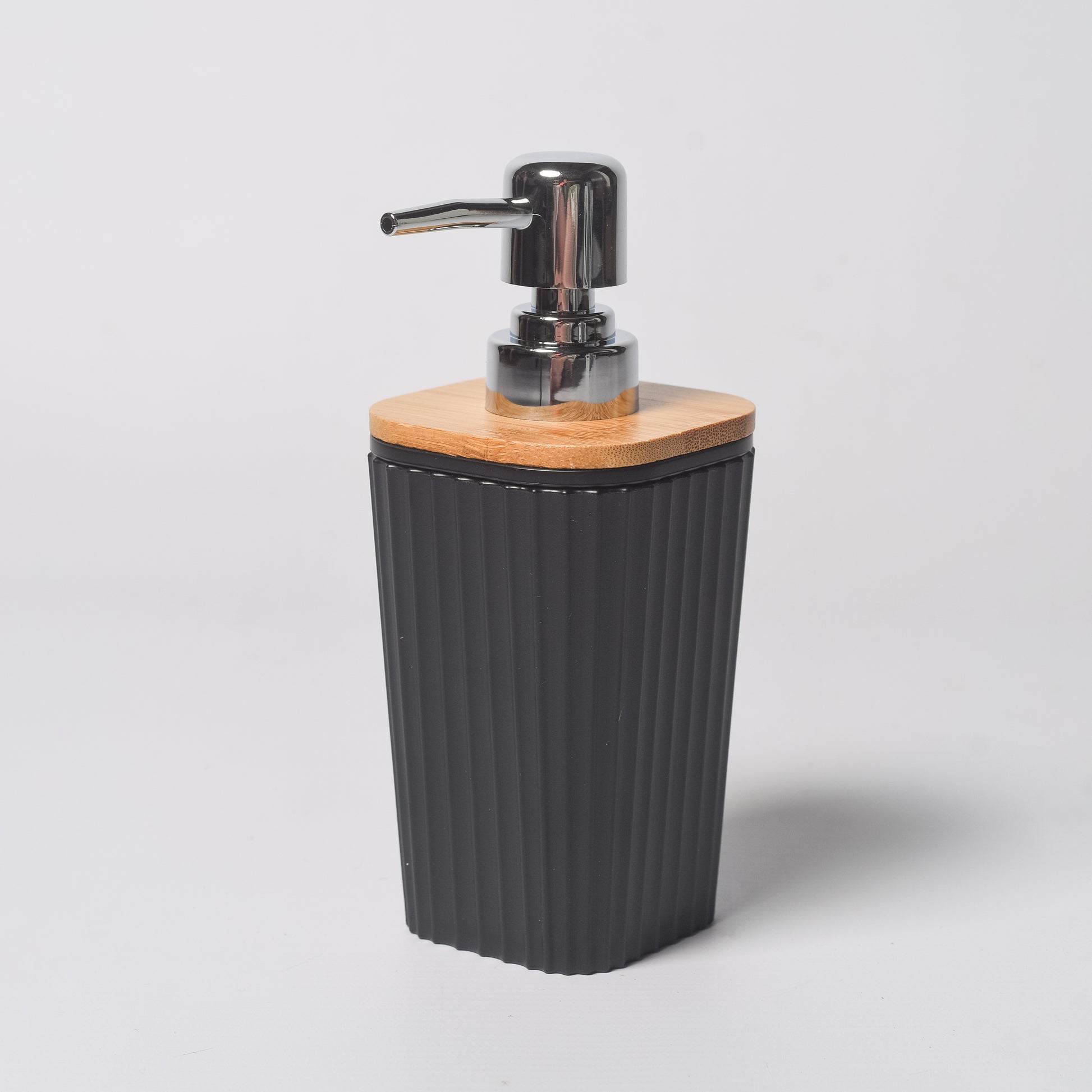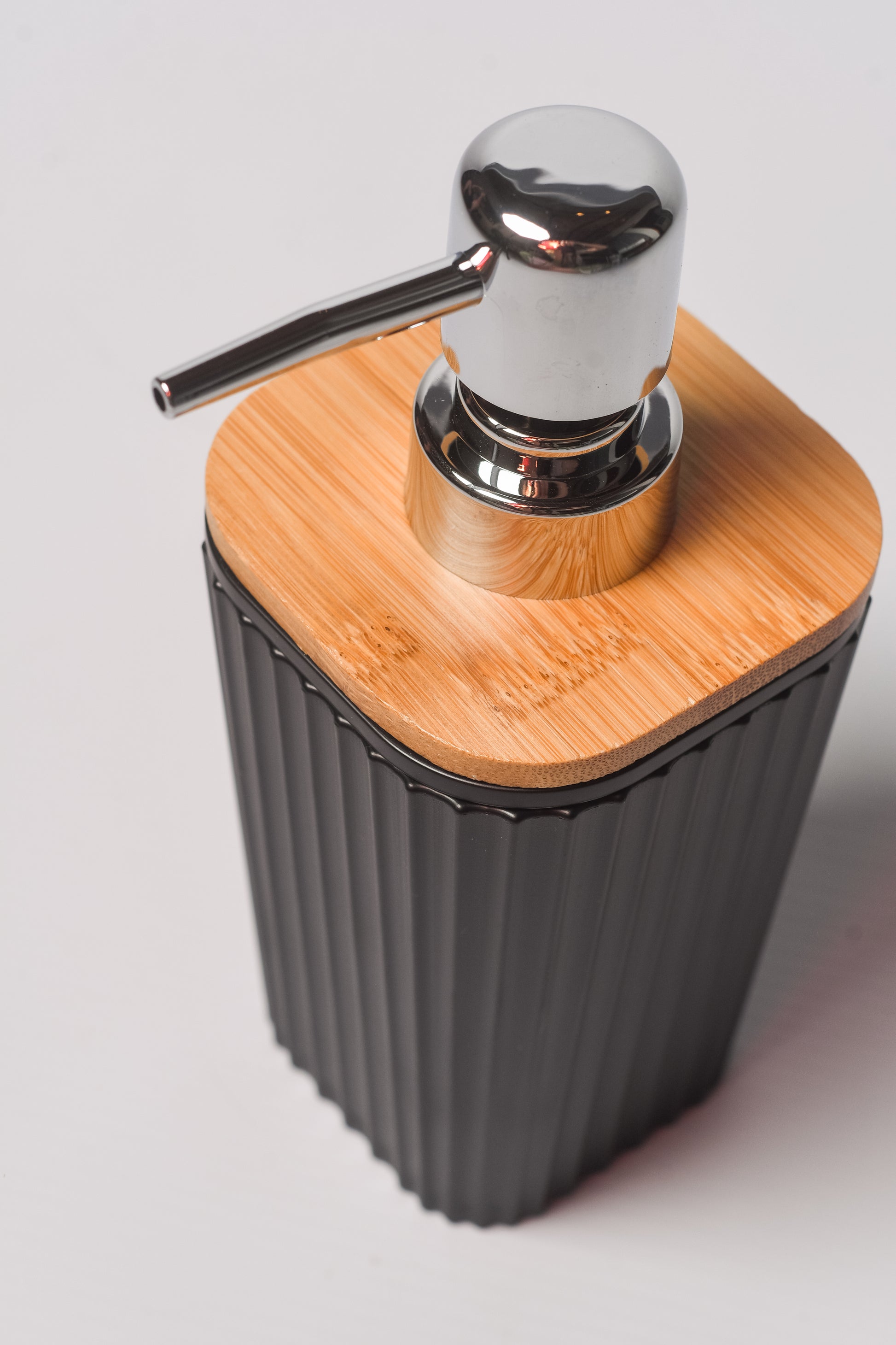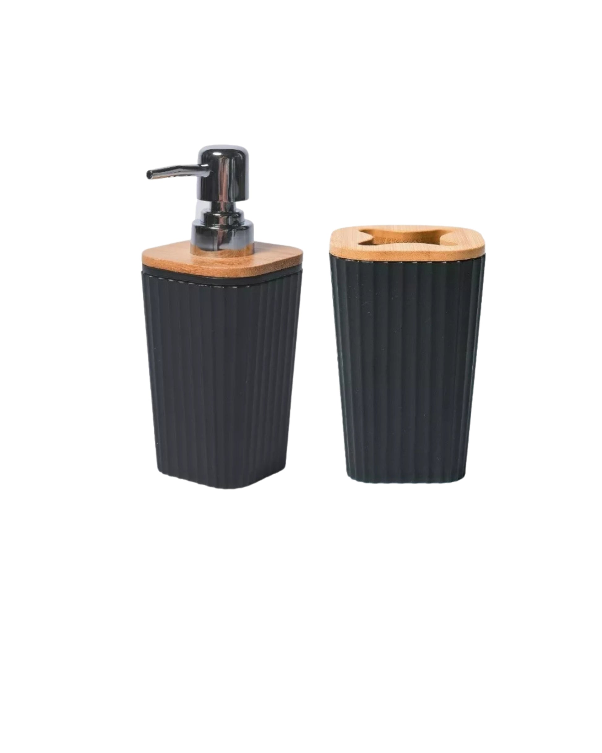 Transforma tu baño con este kit para baño, que incluye, dispenser de jabón, vaso y porta cepillo de dientes negro con detalles en bambú. El kit incluye todo lo necesario para mantener tu baño organizado, con una estética moderna y fácil de integrar en cualquier decoración.