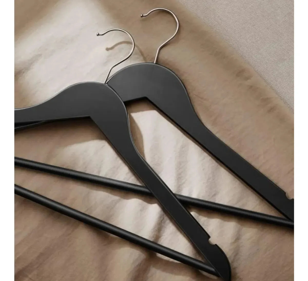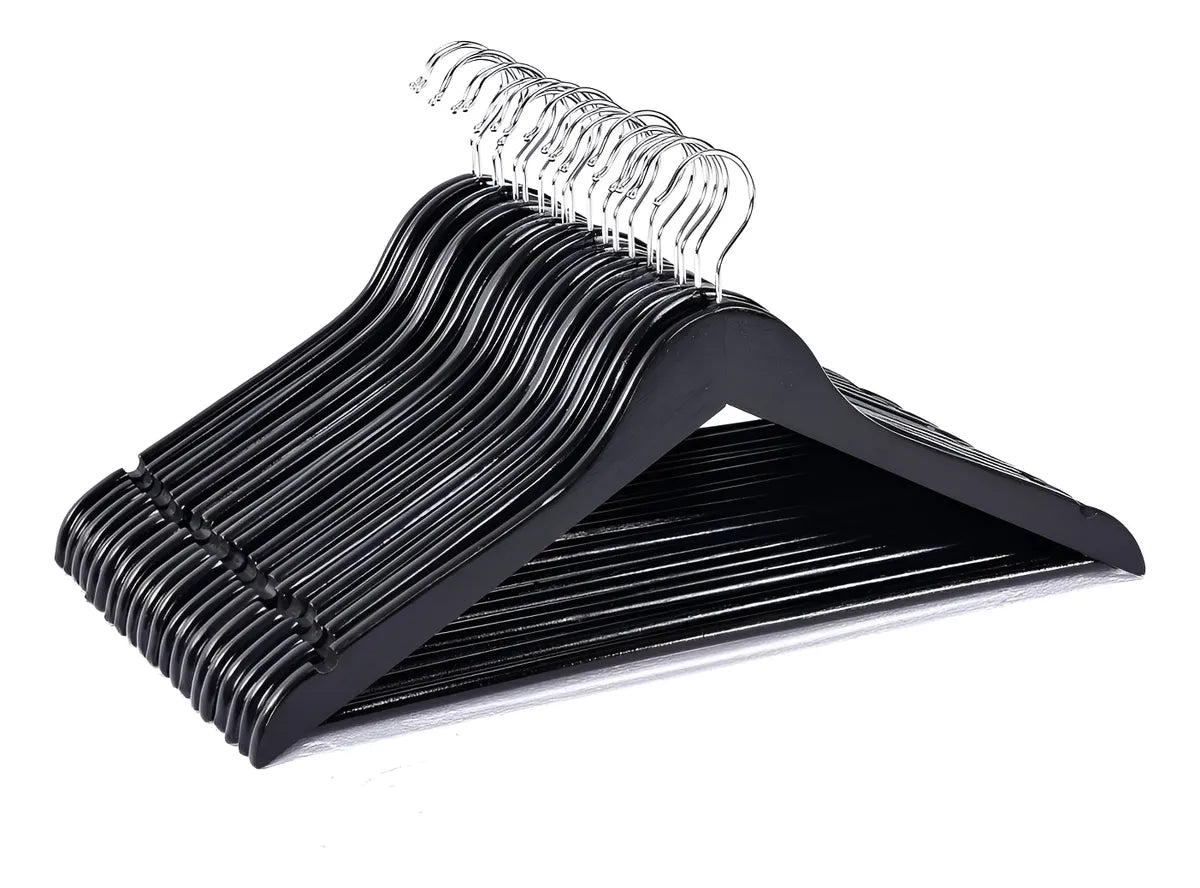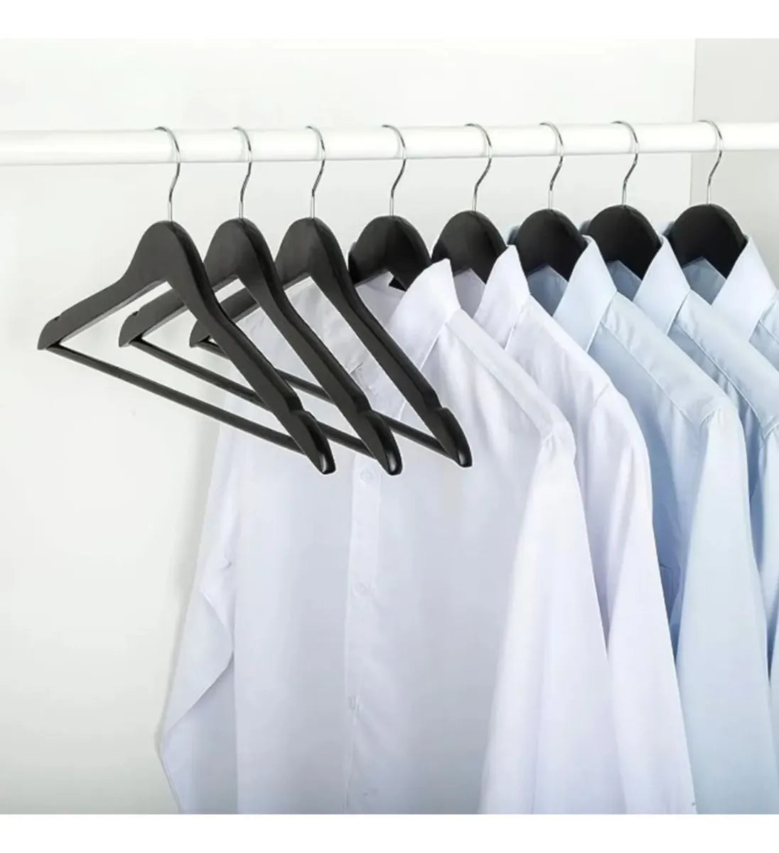 Dale a tu ropa el soporte que merece con este set de 100 perchas de madera premium reforzadas en elegante acabado negro mate. Su construcción sólida y duradera las hace perfectas para colgar prendas pesadas como sacos, trajes y abrigos sin que pierdan su forma.