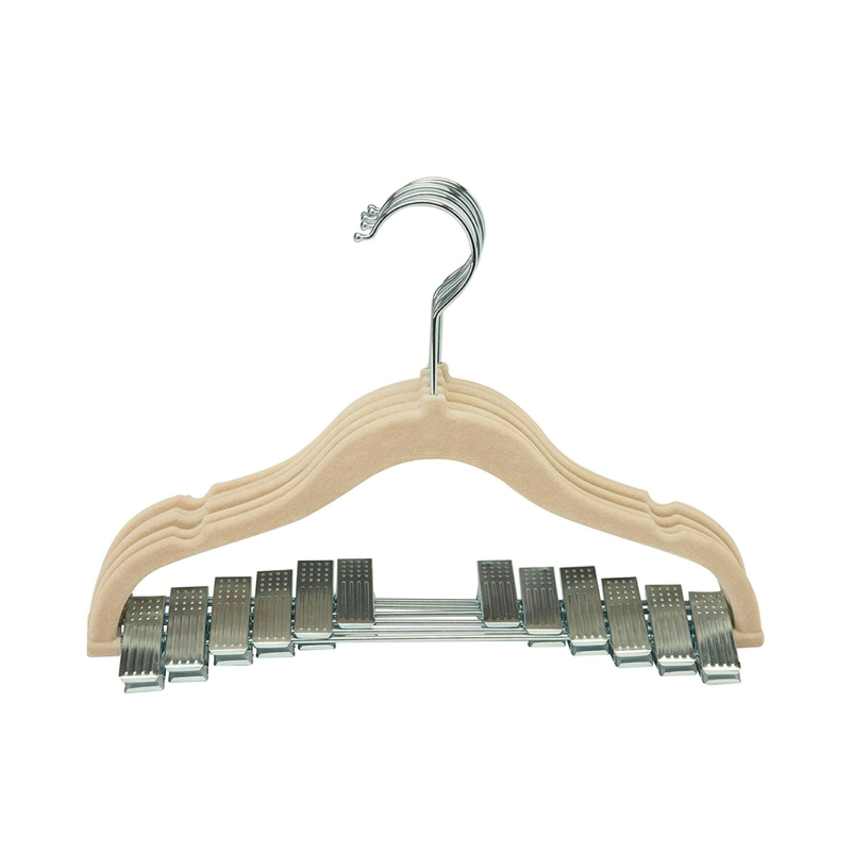 Mantén tu ropa ordenada y sin arrugas con estas perchas de terciopelo beige con clips, una solución práctica y estilizada para tu día a día.