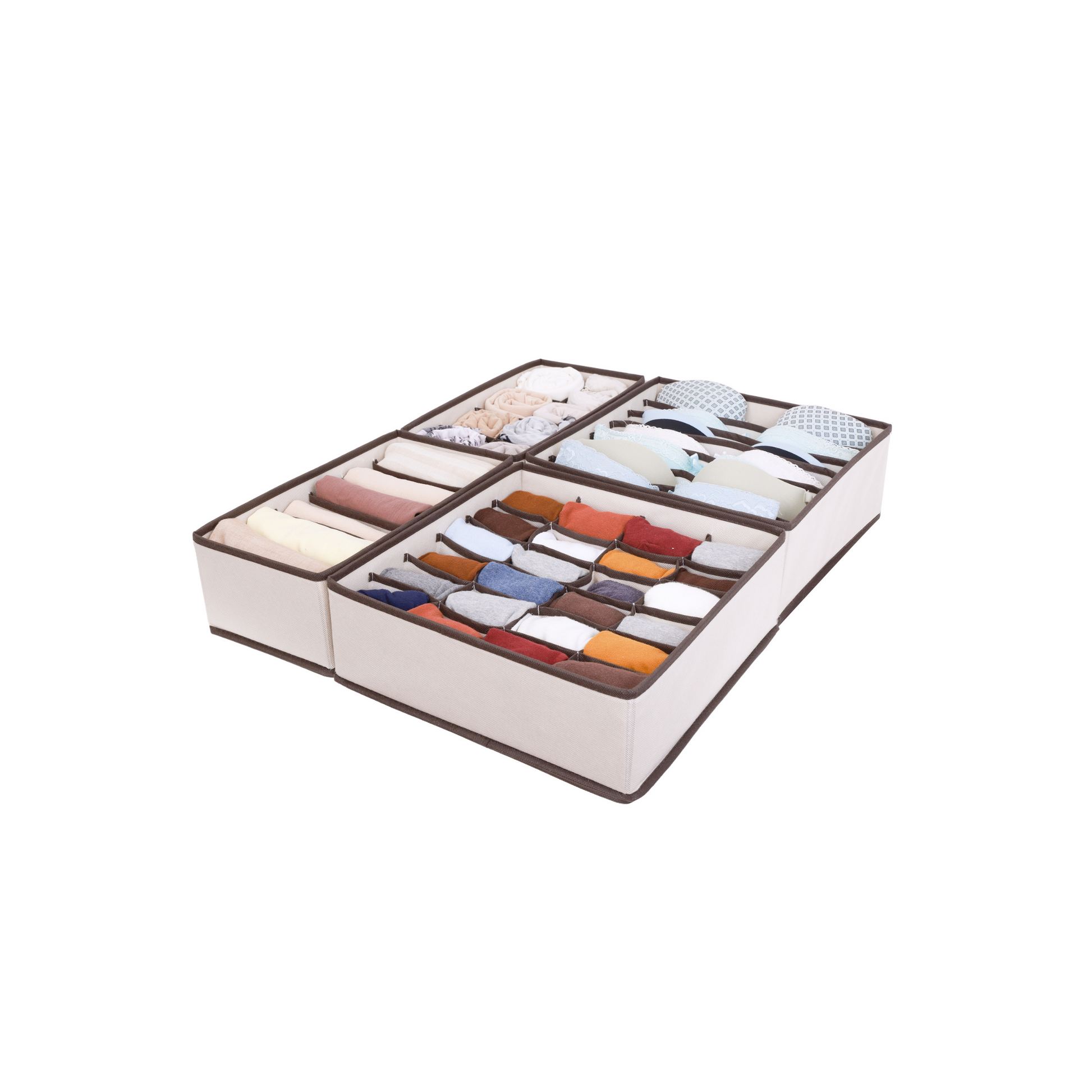 Set X4 Organizador Ropa Interior Separador Cajon Tela Beige