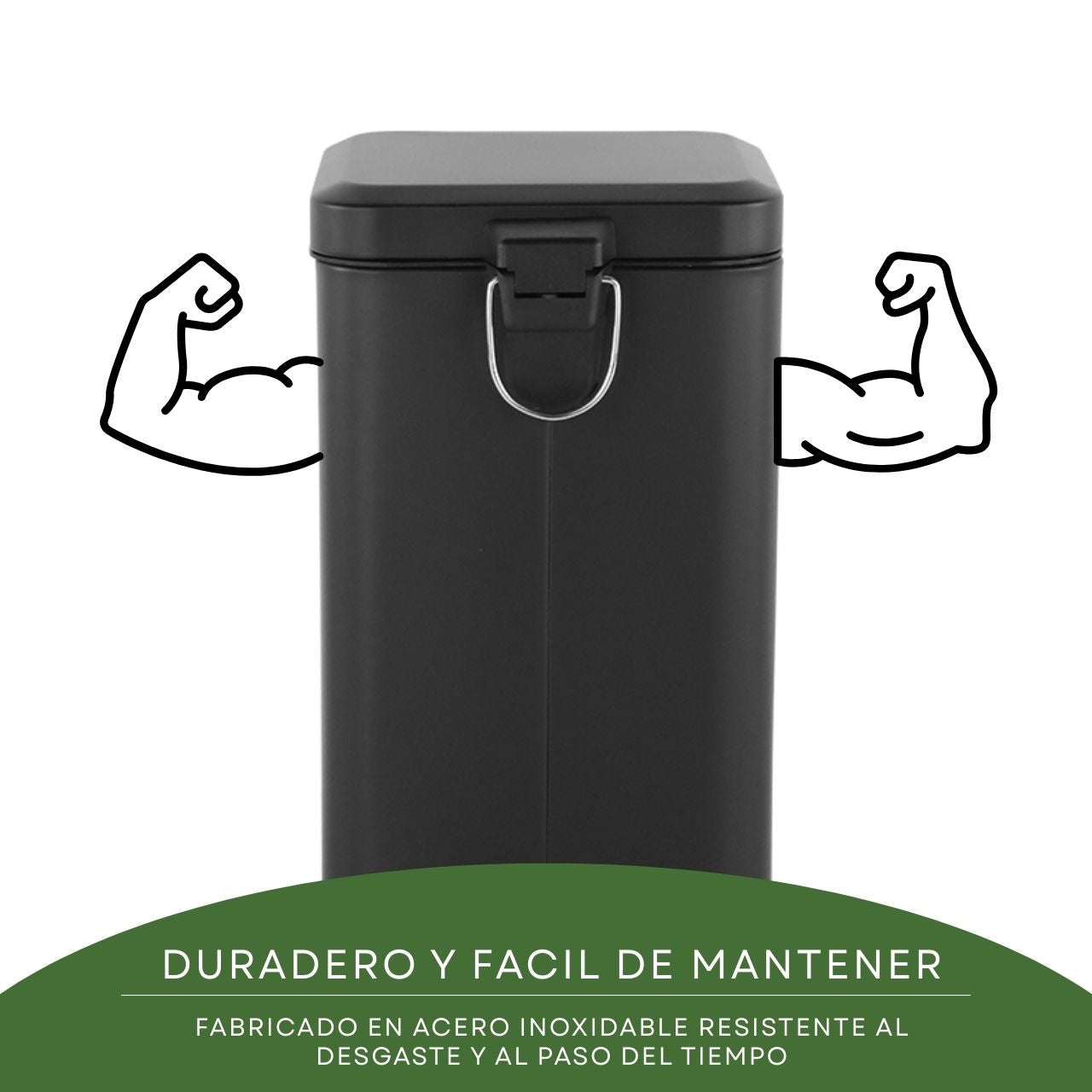 Tacho De Basura Cesto Residuo A Pedal Cuadrado 12 Lts Color Negro