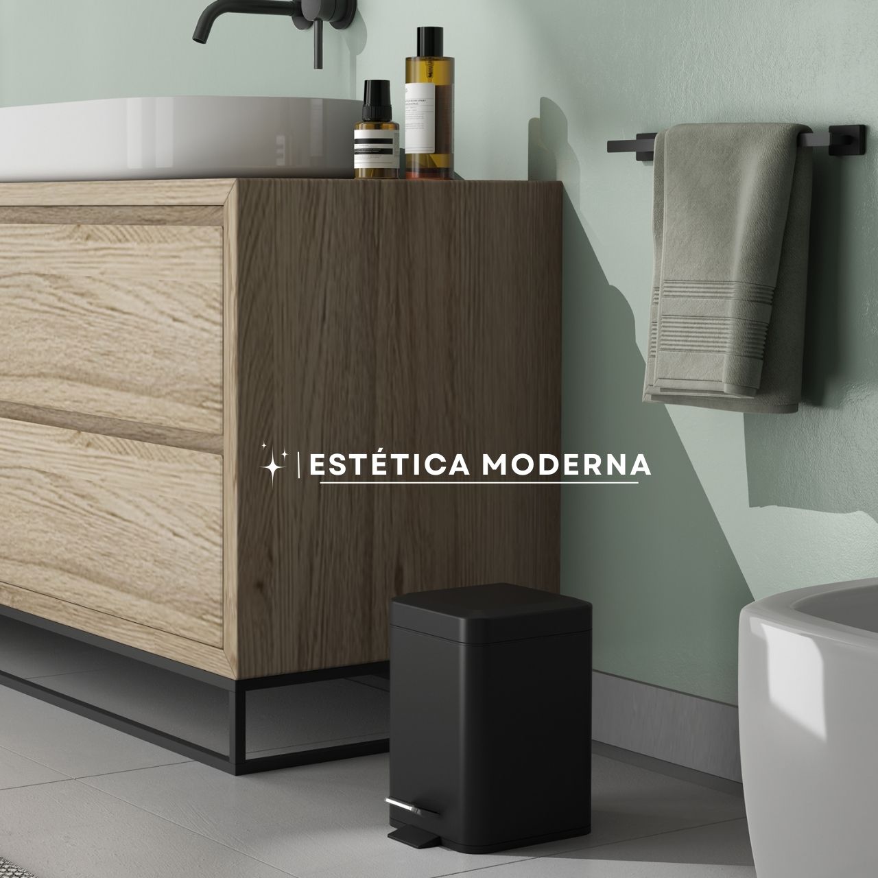 TACHO DE BASURA CUADRADO NEGRO MATE DE 12 LITROS CON APERTURA PEDAL Y CESTO INTERNO DESMONTABLE.